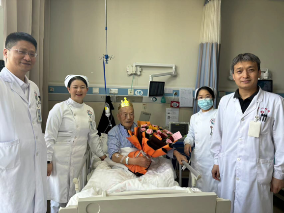 得知术后第二天是王大爷91岁生日,科室决定在病房里为老人家举办一个简单的生日会。医护人员们精心准备了生日蛋糕和鲜花,为患者送上了温馨的祝福。王大爷感慨地说:“在这里,我不仅得到了最好的治疗,还感受到了家一般的温暖。”